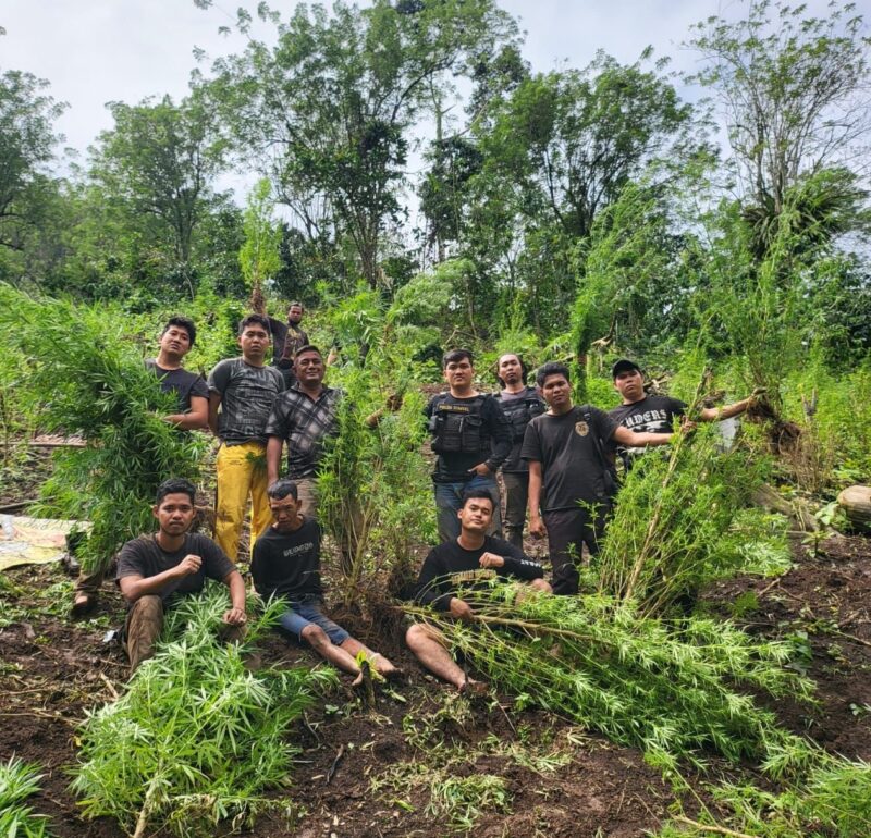 Dari penggeledahan yang dilakukan, tim menemukan tanaman jenis ganja sebanyak 2000 batang siap panen dengan tinggi 1,5 meter – 2,5 Meter pada lahan seluas 2 ha dan – paket shabu beserta alat hisap shabu (bong) dalam pondok.