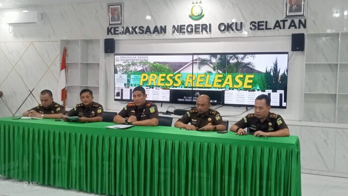 Dalam konferensi pers tersebut, Kejari OKU Selatan didampingi oleh Kasi Intelijen, Kasi Pidsus, Kasi Pidum, dan tim lainnya.