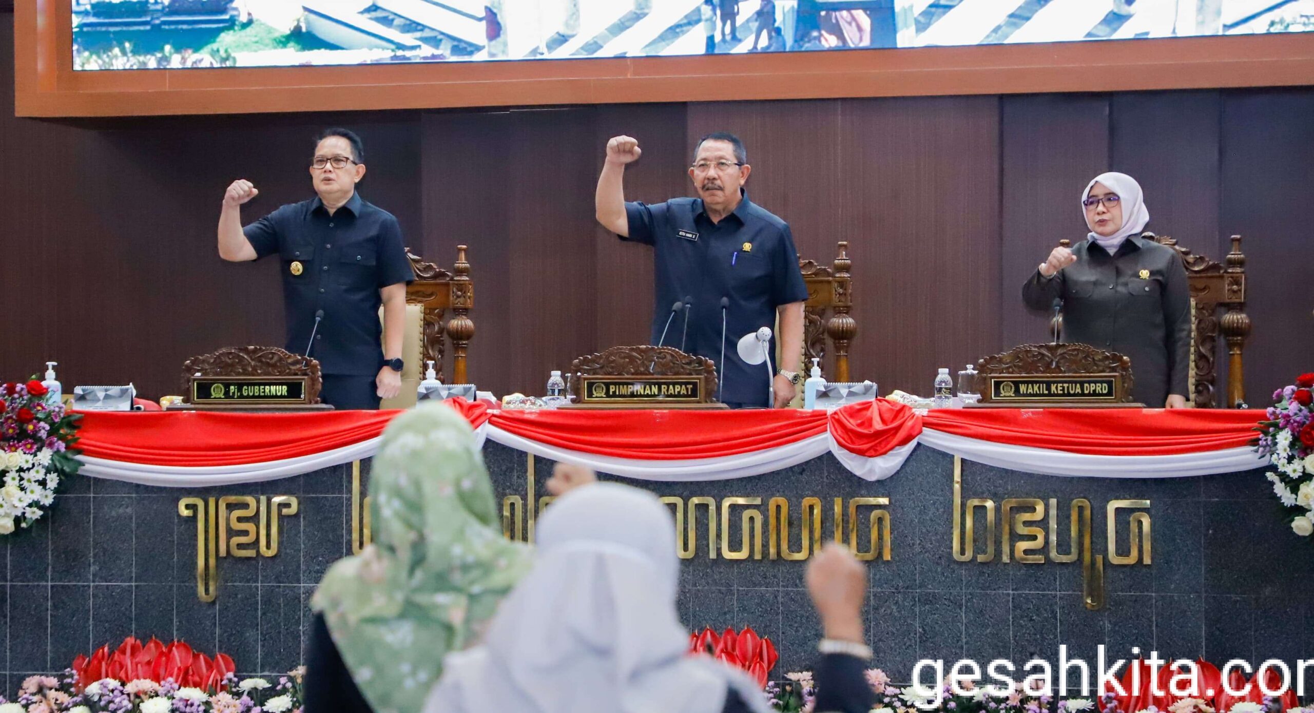 SURABAYA, GESAHKITA COM—Penjabat (Pj) Gubernur Jawa Timur Adhy Karyono menyampaikan jawaban eksekutif Raperda tentang Perubahan Anggaran Pendapatan Belanja Daerah (P-APBD) tahun 2024 pada rapat paripurna di Gedung DPRD Jatim.
