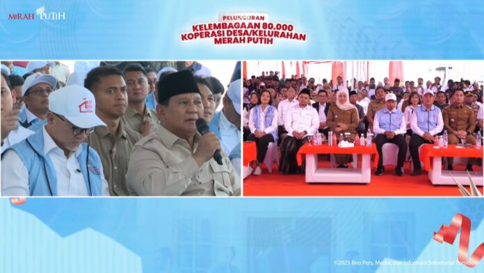 GESAHKITA .COM, SURABAYA,—– Gubernur Jawa Timur Khofifah Indar Parawansa menegaskan bahwa Jatim menjadi provinsi terbanyak dan tercepat menuntaskan 100 persen kelembagaan Koperasi Desa/Kelurahan Merah Putih (KDKMP) di hadapan Presiden Prabowo Subianto saat peluncuran KDKMP secara daring dari KDMP Pucangan Kec. Montong Kabupaten Tuban, Senin (21/7).