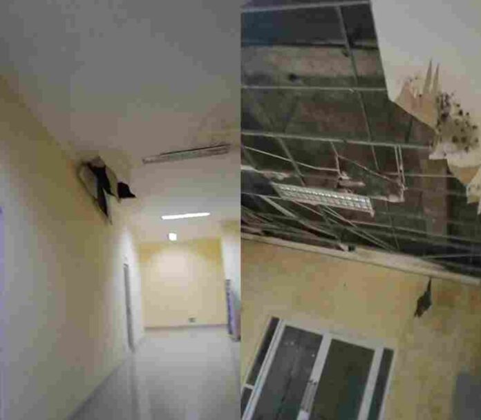 Pantauan awak media pada Selasa (22/07/2025), sejumlah bagian rumah sakit terlihat mengalami kerusakan parah. Plafon banyak yang jebol, rumput liar tumbuh subur di halaman, dan cat bangunan tampak kusam. Bahkan pada malam hari, lorong rumah sakit gelap karena banyak lampu yang mati.