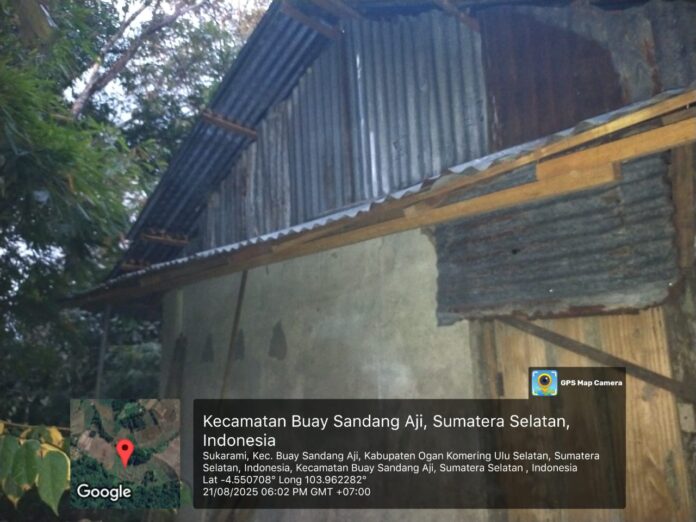 Berdasarkan informasi tersebut awak media pun melihat ke lokasi bangunan, terlihat bangunan tersebut hanya diperkirakan dengan luas bangunan berkisar 3 meter x 4 meter nampak atap seng baru di beberapa sisinya. Kamis 22/8/2025