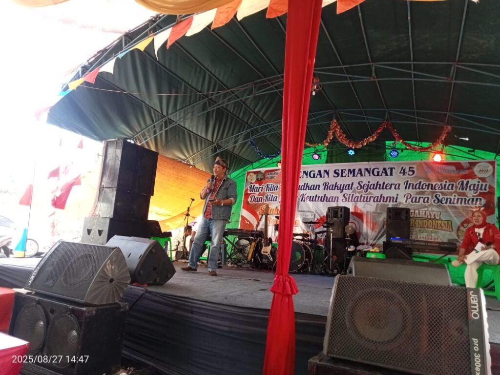 GESAHKITA.COM, PALEMBANG-–Denting musik dangdut menggema di Jalan Merdeka, tepat di sisi Jembatan Karang dekat Kantor Walikota Palembang, Selasa sore (27/8). Panggung hiburan rakyat yang digelar Kerukunan Keluarga Pedangdut Palembang (KKPP) menjadi magnet warga yang datang merayakan Hari Ulang Tahun Kemerdekaan RI ke-80.