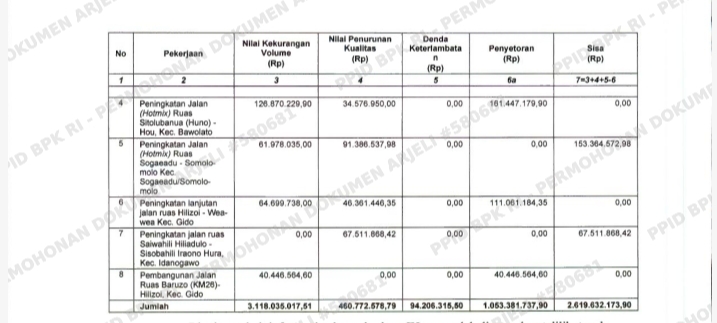 Kekurangan Volume, Kualitas serta Denda Keterlambatan atas Paket Pekerjaan JIJ Dinas PUTR Kabupaten Nias, Jadi Temuan BPK Sumut, LSM Gempur Akan Melaporkan..!