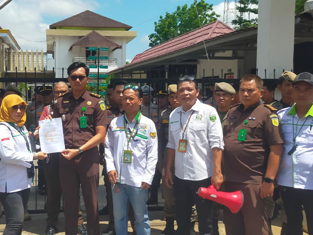 Usai menyampaikan tuntutan, perwakilan massa menyerahkan berkas laporan pengaduan ke pihak Kejaksaan Negeri Banyuasin untuk ditindaklanjuti.