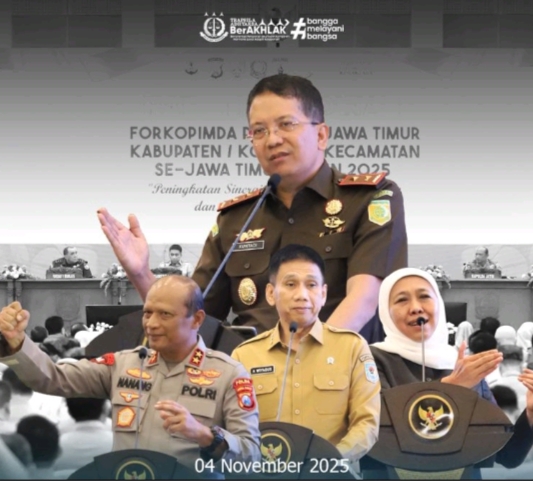 GESAHKITA .COM, SURABAYA–– Kepala Kejaksaan Tinggi Jawa Timur, Dr. Kuntadi, S.H., M.H., menjadi narasumber dalam Rapat Koordinasi Peningkatan Sinergitas Menjaga Kerukunan, Keamanan, dan Ketertiban Umum yang diselenggarakan oleh Pemerintah Provinsi Jawa Timur di Grand City Convention and Exhibition Surabaya, Selasa (4/11/2025).