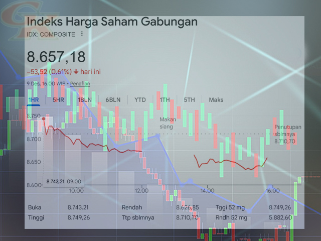 GESAHKITA – Aksi profit taking pelaku pasar menjelang pertemuan The Fed membuat Indeks Harga Saham Gabungan (IHSG) Bursa Efek Indonesia (BEI) pada Selasa (09/12/2025) sore melemah.