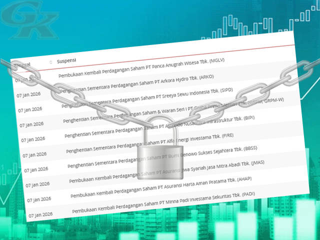 GESAHKITA – Bursa Efek Indonesia (BEI) menghentikan sementara (suspensi) perdagangan saham enam emiten mulai sesi I perdagangan Kamis (8/1/2026).