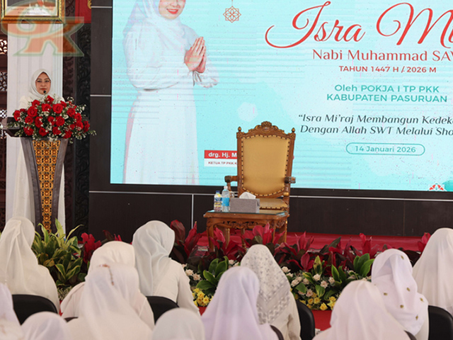 Pasuruan, GESAHKITA – Tim Penggerak Pemberdayaan dan Kesejahteraan Keluarga (TP PKK) Kabupaten Pasuruan memperingati Isra Mi’raj Nabi Muhammad SAW 1447 Hijriah di Pendopo Nyawiji Ngesti Wenganing Gusti, Rabu (14/1/2026).